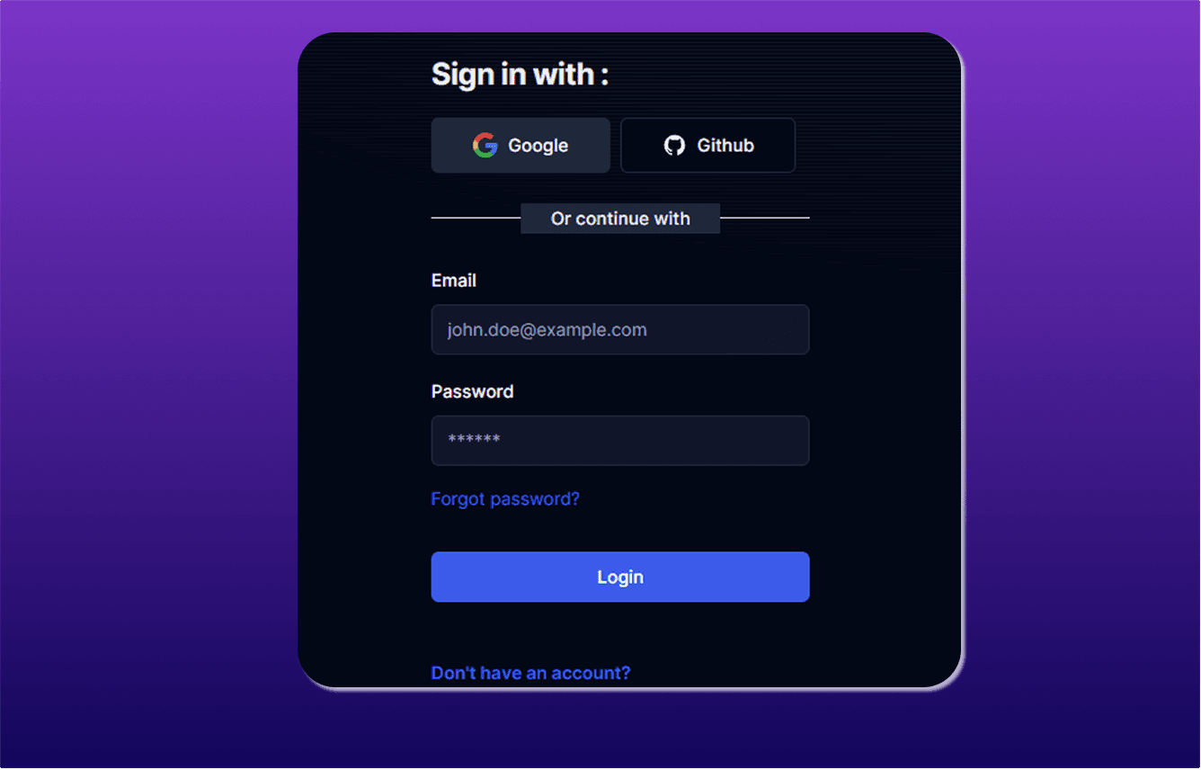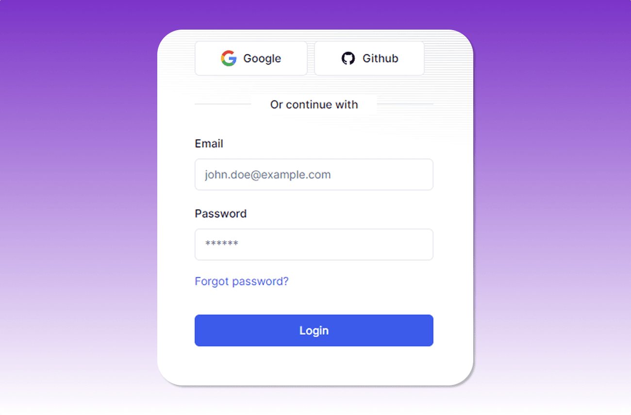 Our boilerplate includes two separate authentication systems powered by Auth.js 5.0: one for your main platform users and another for members of your users' created apps. This dual-auth architecture enables you to fully customize every aspect of both authentication flows.