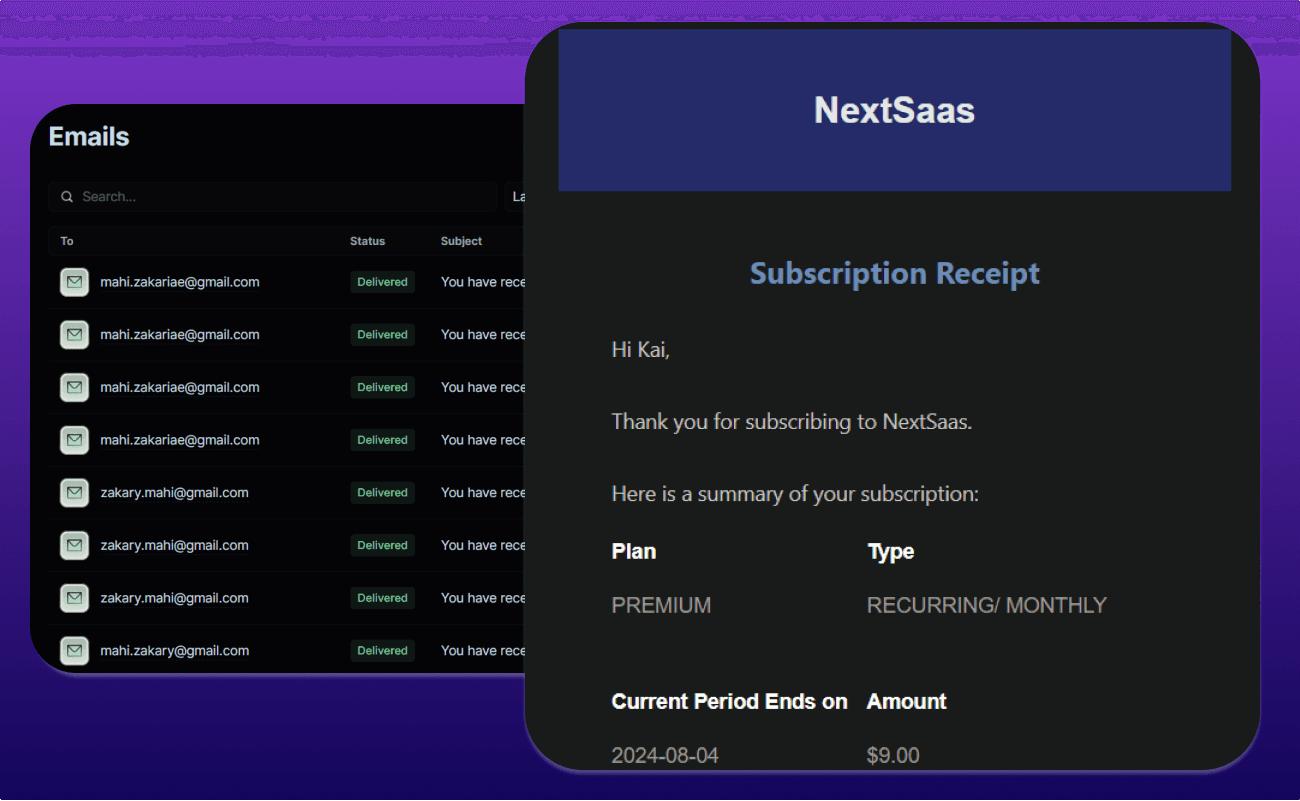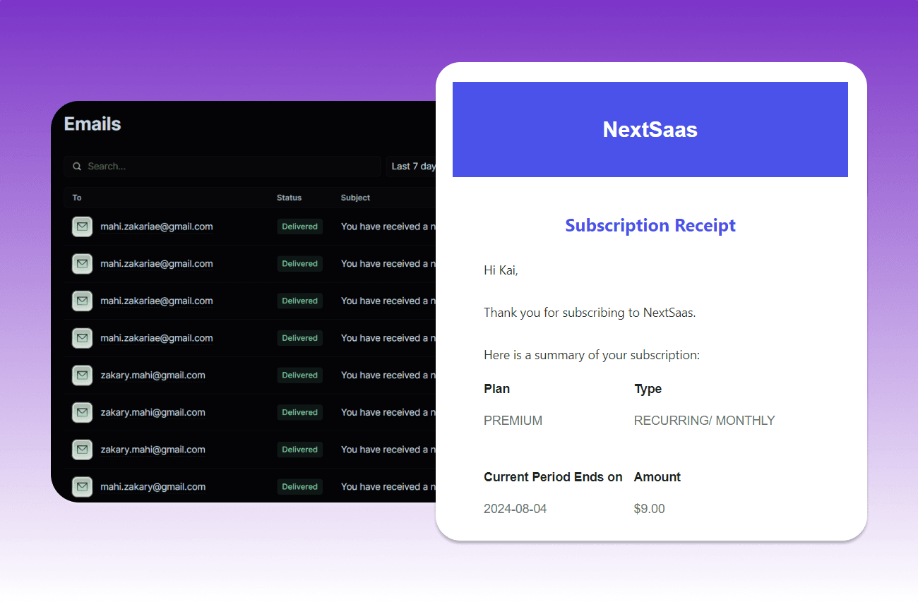Send subscription receipts to clients