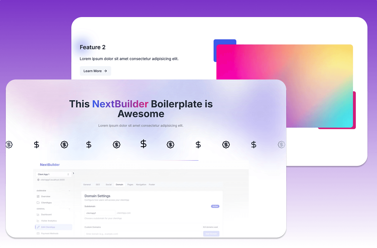 The complete Next.js boilerplate for building multi-tenant SaaS platforms. Let your clients create unlimited apps with custom subdomains & SSL.
